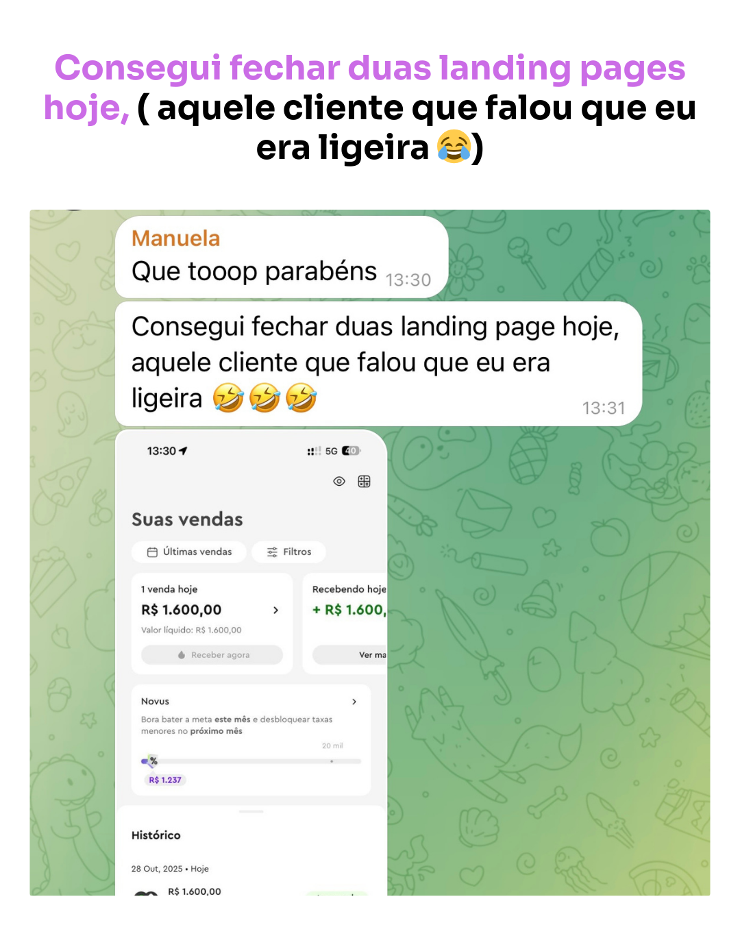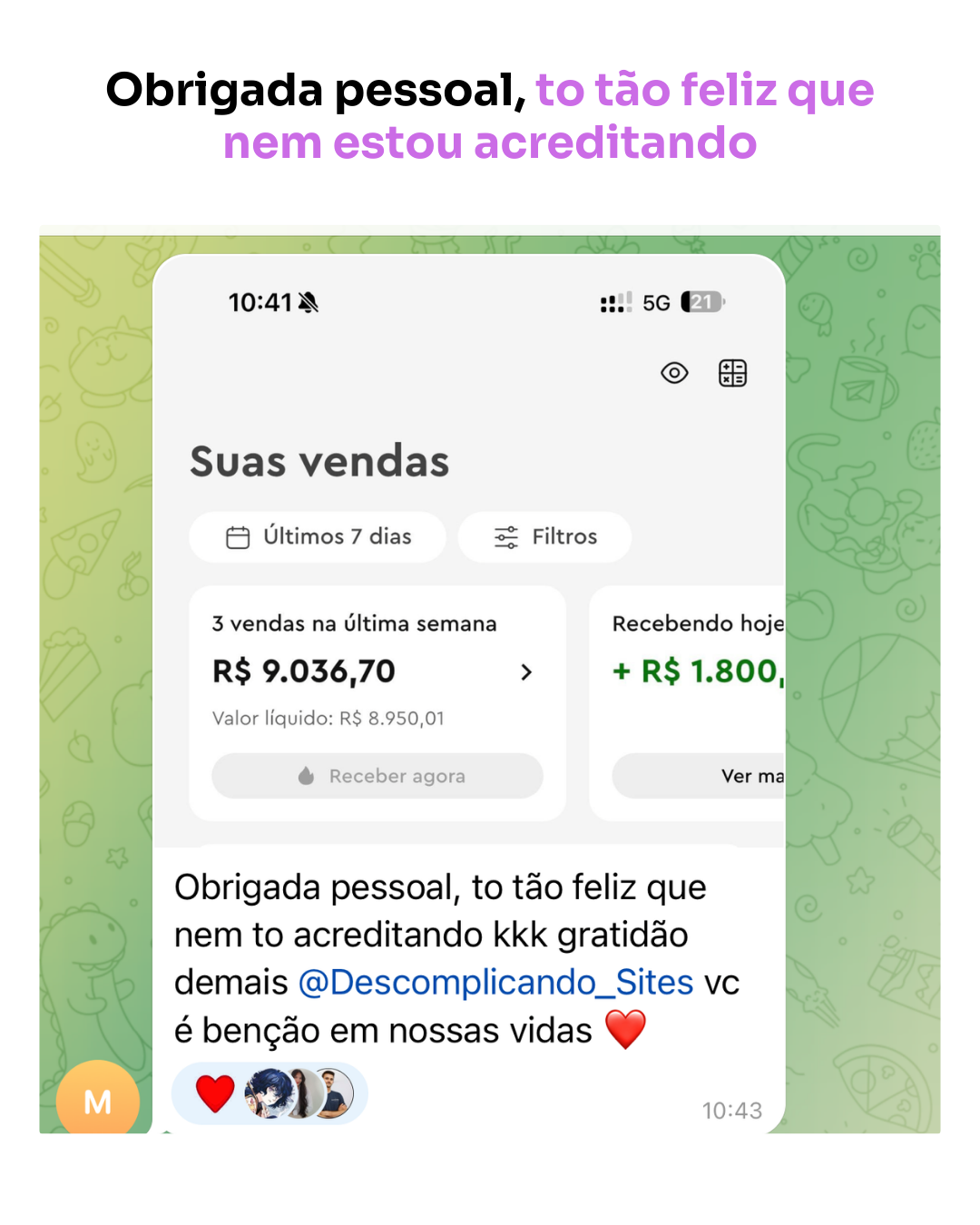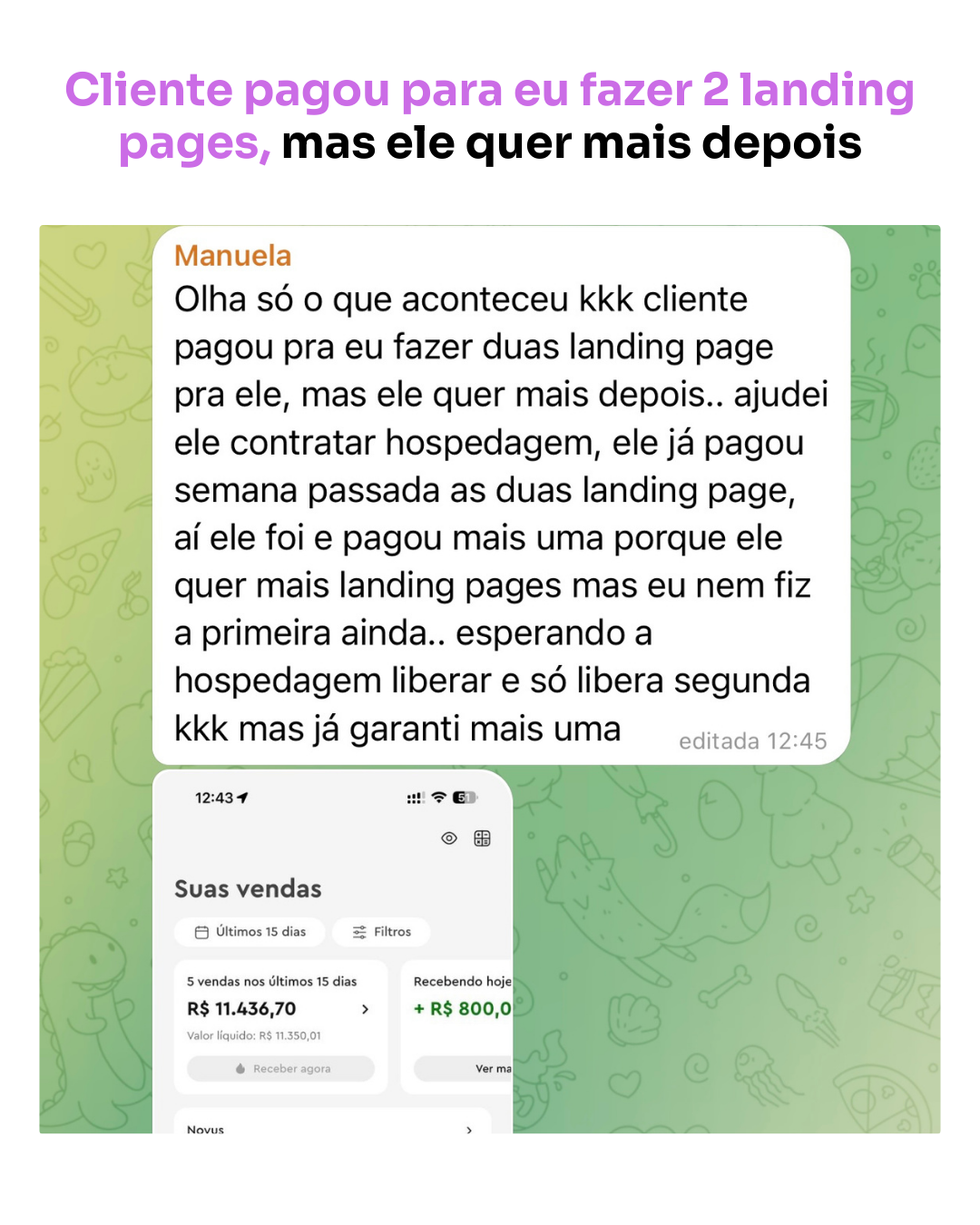 Hoje, muitos dos meus alunos vivem exclusivamente de criação de sites, faturando seus primeiros milhares de reais e construindo uma carreira que realmente traz liberdade e estabilidade.