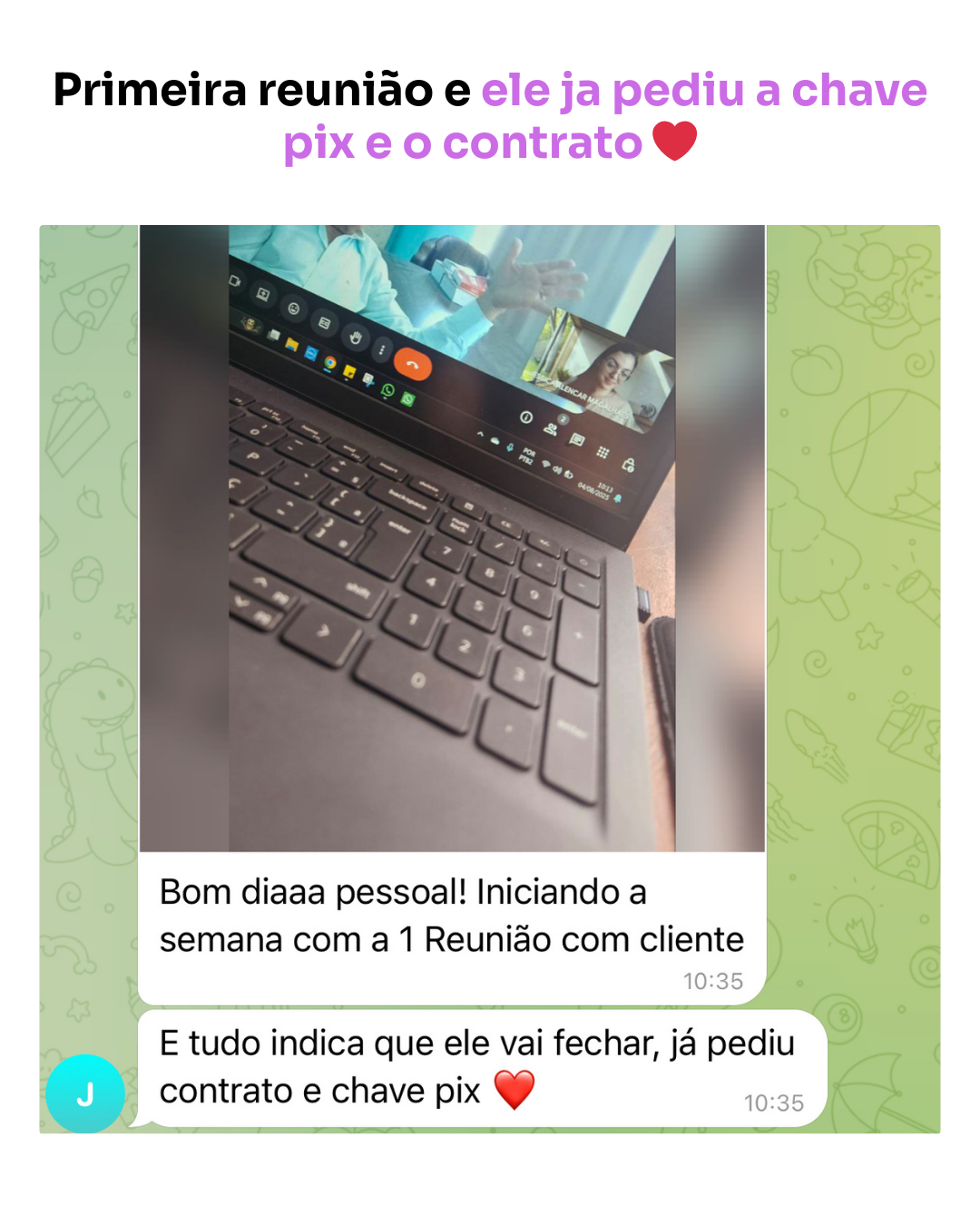 Você recebe roteiros, exemplos e orientações para se comunicar como alguém experiente, mesmo que esteja começando. O cliente sente autoridade. e responde.